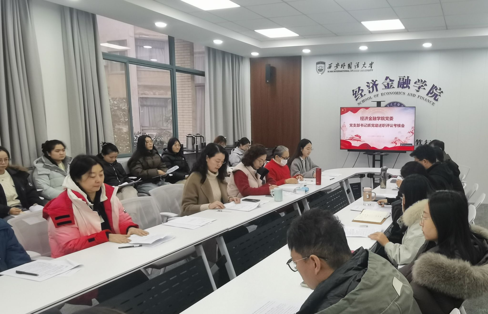 为深入贯彻落实学校党委《关于做好2025年度基层党建述职评议考核工作的通知》文件要求,压紧压实基层党建工作责任,提升党支部建设质量。2025年12月31日下午,经济金融学院党委在教学楼E303组织召开2025年度党支部书记党建述职评议会。学院党委委员、各党支部书记及师生代表参加会议。会议由学院党委书记邓雯主持。