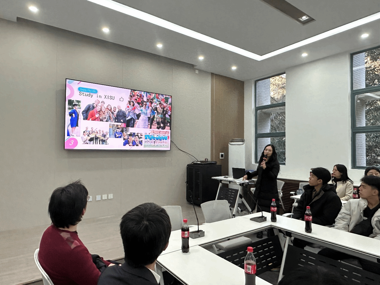 在经济金融学院,交流团参观了学院的教学实验室、学术交流空间,近距离感受学院的教学科研氛围。国际交流与合作处王丹老师详细介绍了学校国际留学生招生政策、培养体系及奖学金设置,重点解读了针对东南亚学生的专项招生优惠与支持措施,为马来亚大学学生提供了清晰的留学申请指引。
