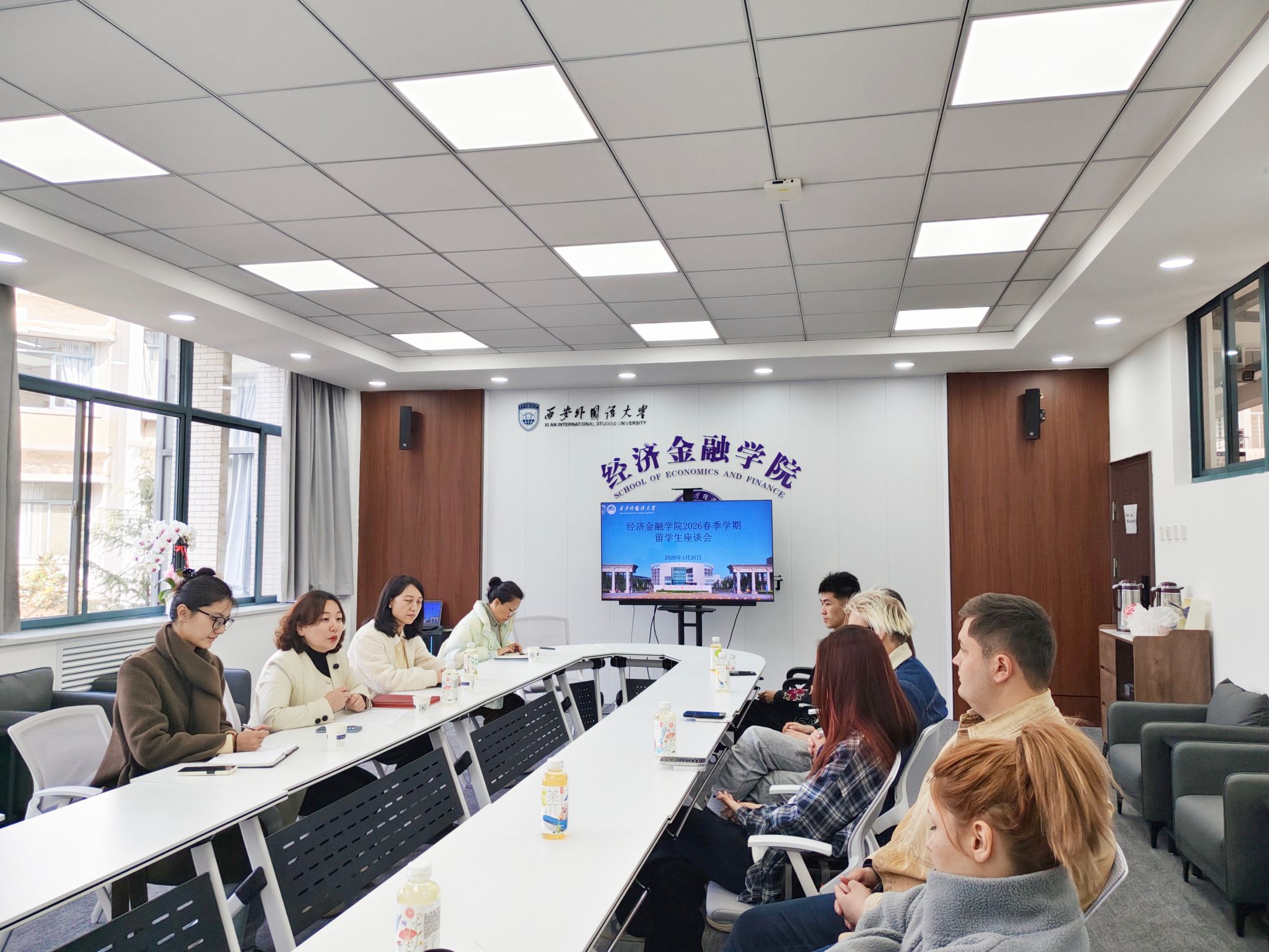 为深入了解留学生学习与生活情况,进一步加强学院与留学生之间的沟通交流,320日下午,经济金融学院在E303会议室召开2026年春季学期留学生座谈会。学院党委副书记尚瑞、副院长吕寒、教学办主任李敏博、留学生辅导员陈悦瑶及学院留学生代表参加会议