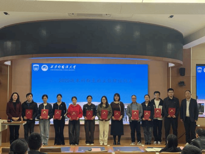 随后,会议举行2025级本科新生班主任聘任仪式。会上,尚瑞副书记宣读班主任聘任决定并颁发聘书。她强调,班主任在学校教育教学工作中发挥着核心作用,希望新任班主任坚守育人初心,遵循学生成长规律,认真履行职责,在学风建设、学业指导、创新科研能力培养等方面,为学生提供全方位、多层次的教育引导和服务,努力成为学生人生发展的引路人。