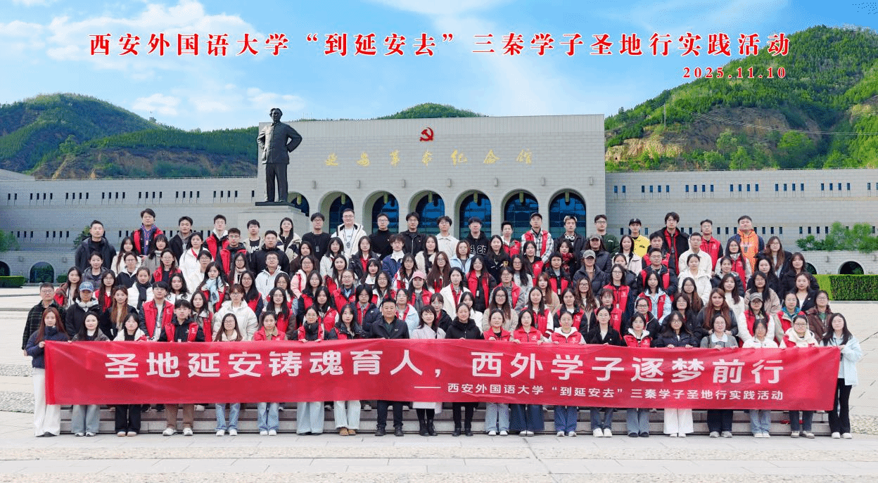 延安,作为中国革命圣地与延安精神的发祥地,承载着中国共产党在艰苦岁月中砥砺奋进的光辉历史,为传承红色基因、汲取奋进力量,11月10日至11日,国际商学部“三秦学子圣地行”实践团怀着崇敬之心,踏上这片承载着厚重历史的土地。实践团以延安革命纪念馆、枣园革命旧址、杨家岭革命旧址为核心路线,正式开启一场沉浸式、深层次的红色精神洗礼之旅。