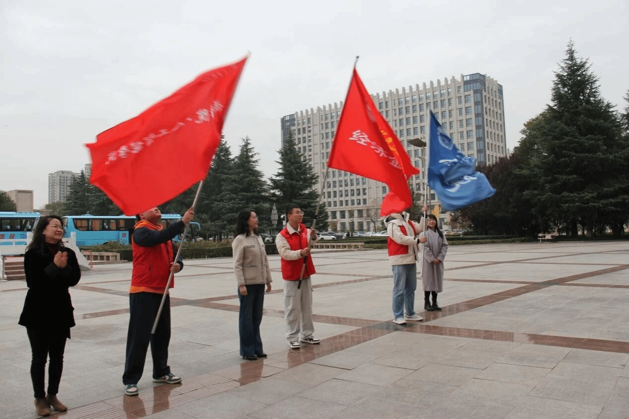 10日清晨,学工部副部长李佳、国际商学部各学院领导班子和教师代表在长安校区图书馆东门举行出征仪式。学工部副部长李佳在出征仪式上作动员讲话,经济金融学院党委书记邓雯、旅游学院·人工智能学院党委书记王丹、商学院副院长郭小瑜分别为学子代表授旗。旗帜的传递,象征着使命与责任的交付,也点燃了全体队员的出征豪情。